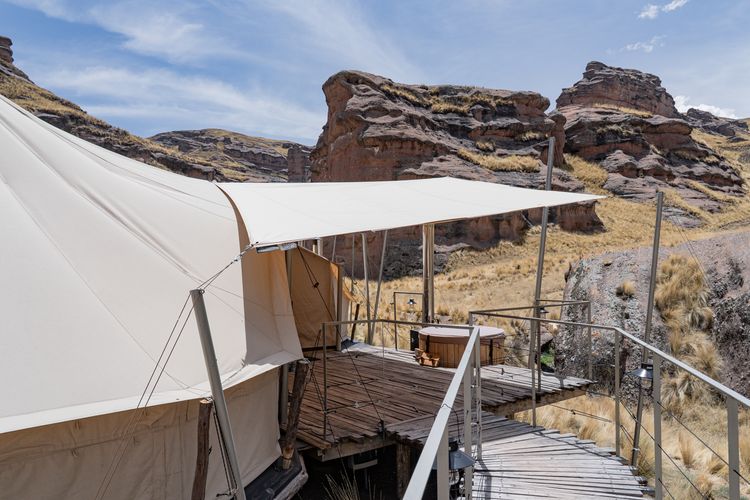 U verlaat Puno. Het camp van vanavond verzorgt het vervoer naar de Tinajani Canyon. Tinajani Tented Camp, waar u de komende nachten verblijft, ligt afgelegen in een ruig landschap van rotsformaties en open vlaktes.